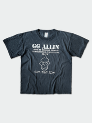 Worn GG Allin tee from the early 2000s, atop a Fruit of the Loom Heavy tag from the era. Visiting vomitose.com leads to a network of crazy outdated fan-made webpages, blogs, shops and catalogues of all things GG, which is pretty cool.